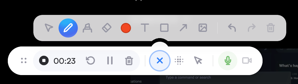 录制时,屏幕里会出现一个 Screenity 工具栏,上面有多种标注工具。