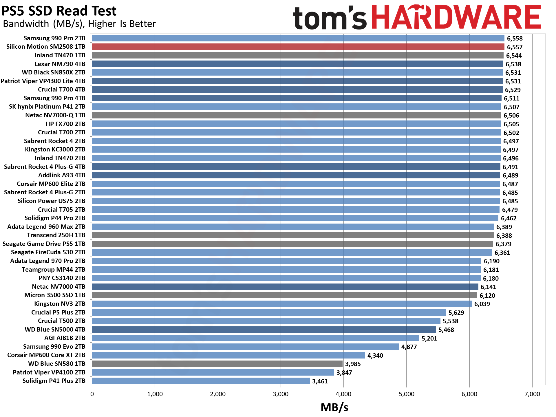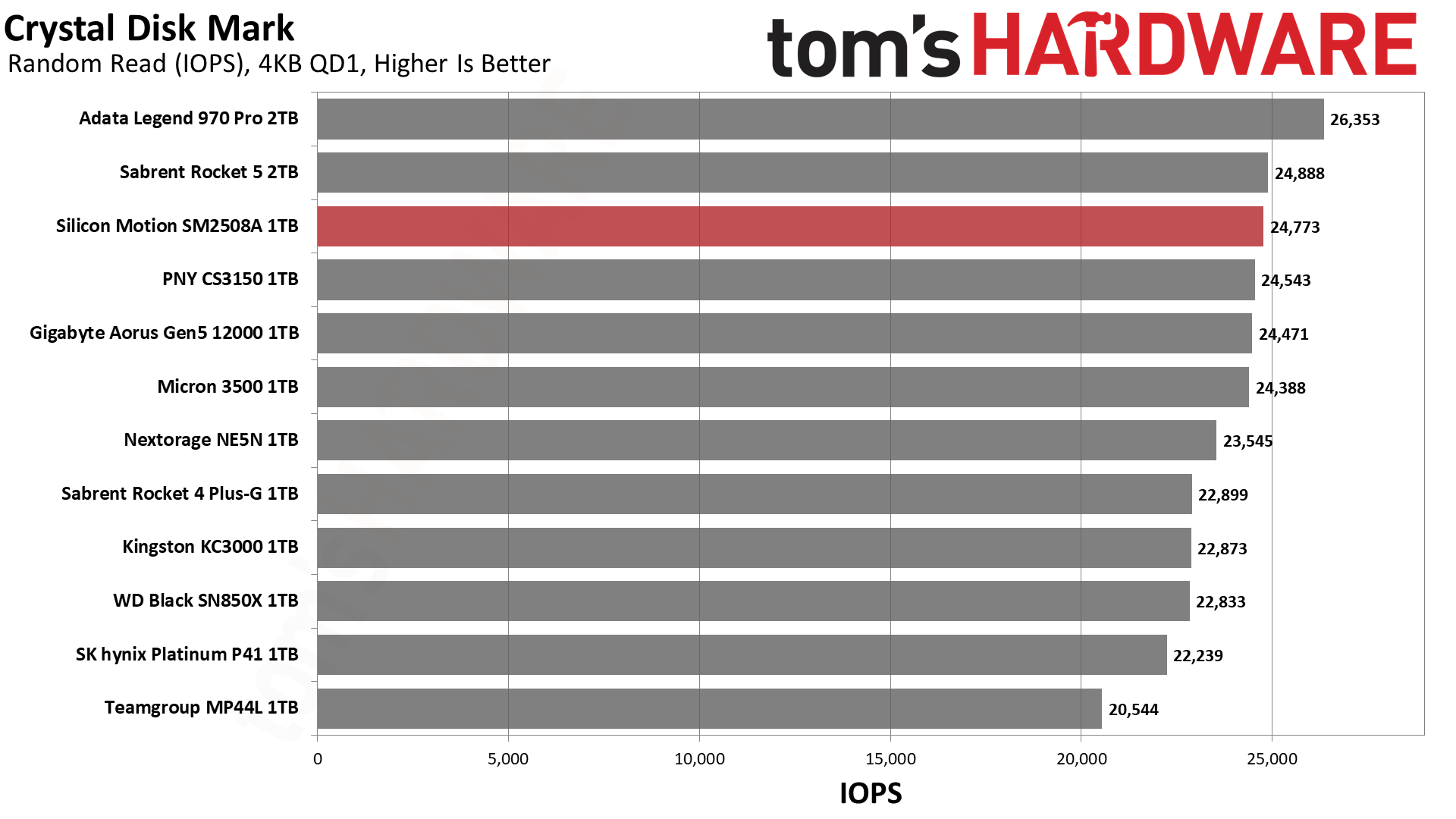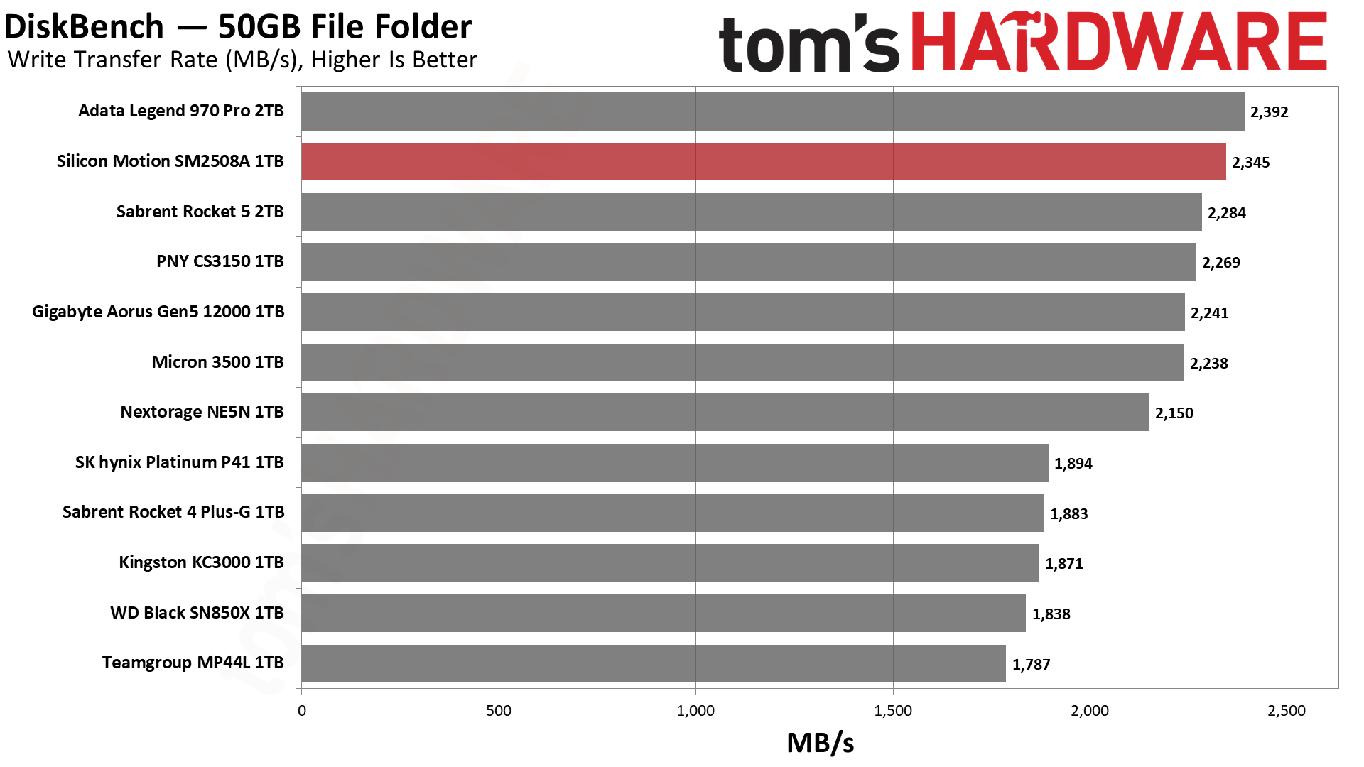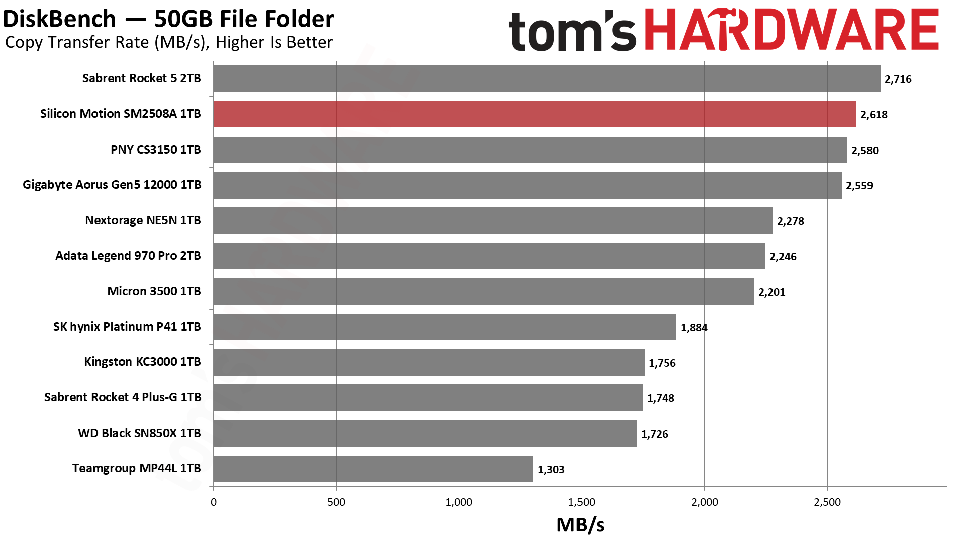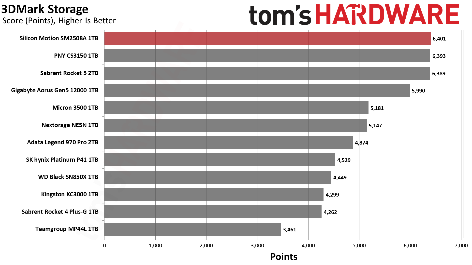 毫无意外,SM2508延迟最低,带宽最高,得分最佳,不过和PNY、Sabrent的差距微乎其微。