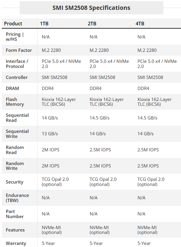 回顾一下慧荣SM2508的主要规格: