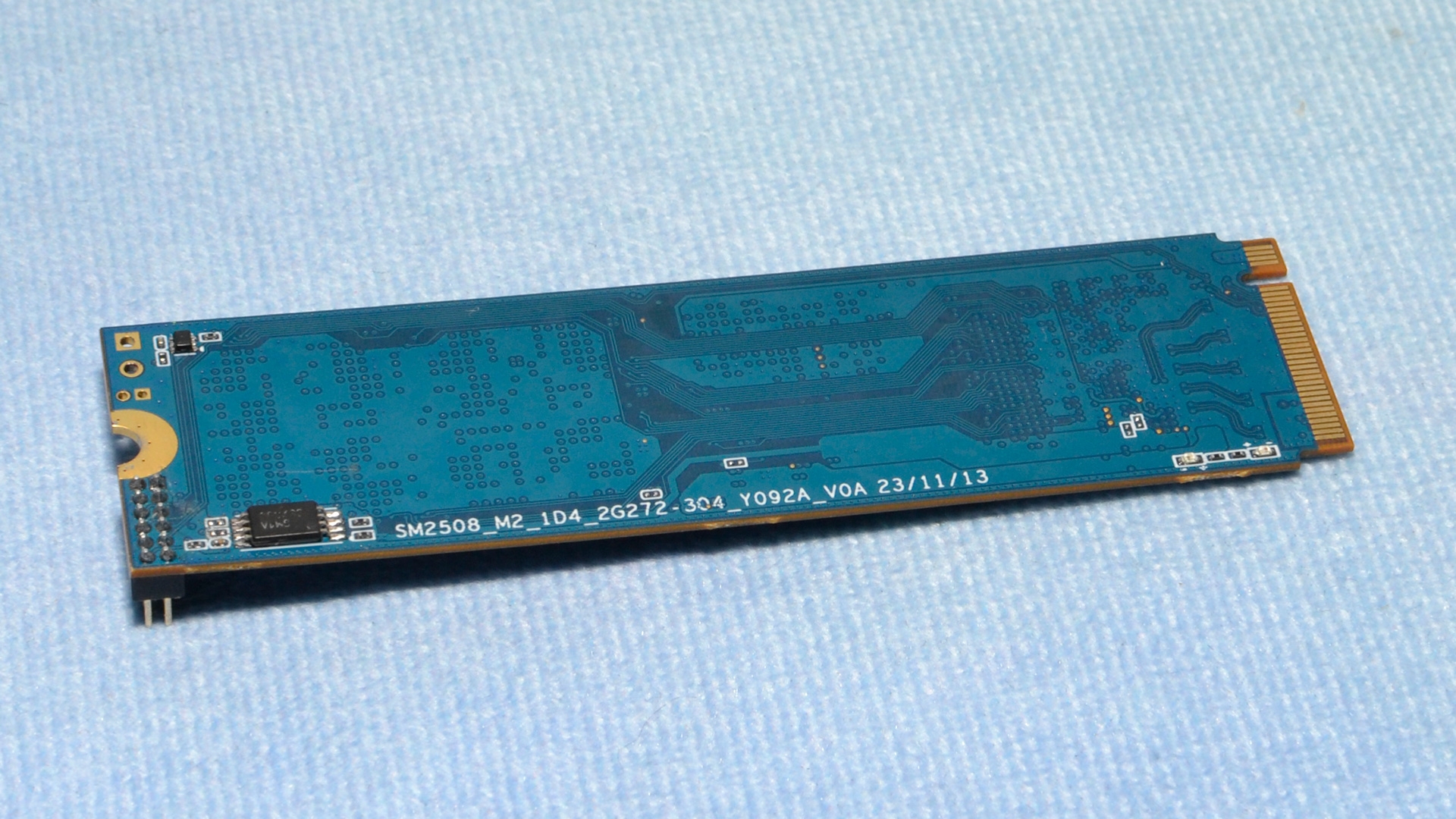 测试样品为M.2 2280形态,铠侠BiCS6 162层TLC闪存,容量1TB(还有2/4TB),缓存1GB DDR4,标称顺序读写14GB/s、13GB/s,随机读写200万IOPS,但写入寿命不详。