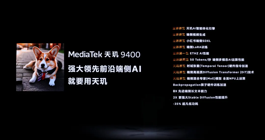 而天玑 9400 的推理性能提升了 80%,端侧 AI 长文本能力更是上一代的 8 倍。