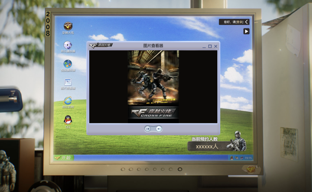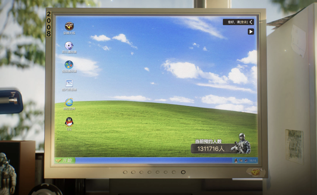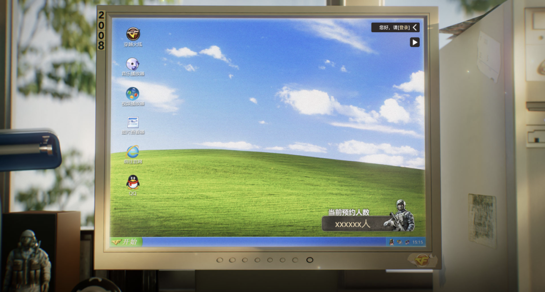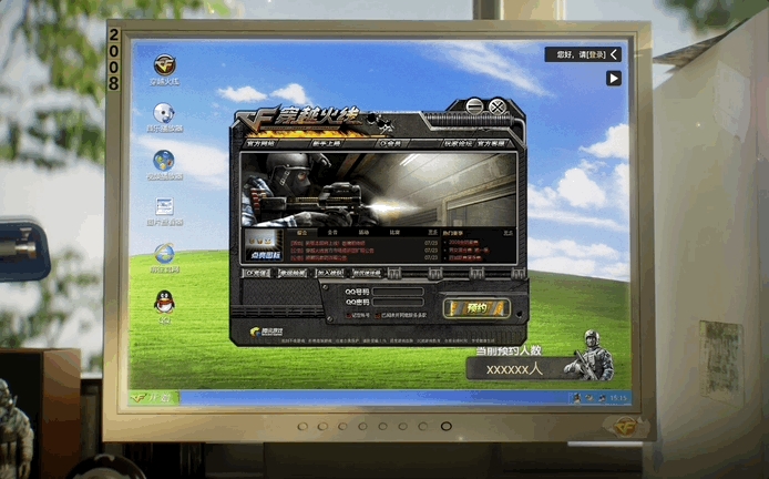 电脑显示器一角贴着 2008 的字样,那年我们举办了奥运会,也经历了汶川大地震,同时也迎来了 CF 国服公测。