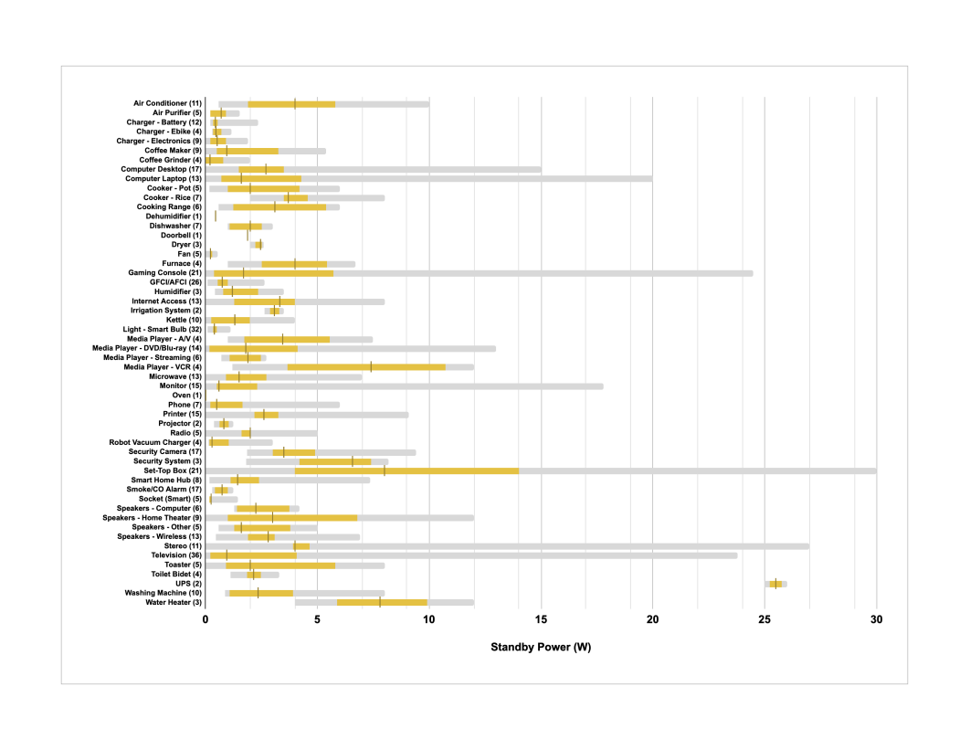 劳伦斯伯克利国家实验室测定的待机功率数据,图片来源:参考资料 1