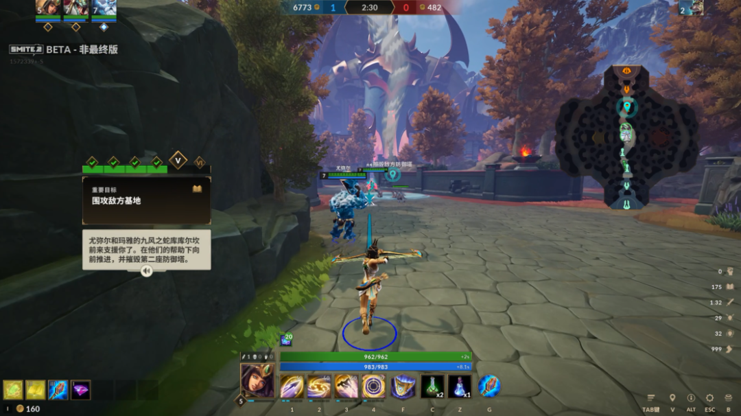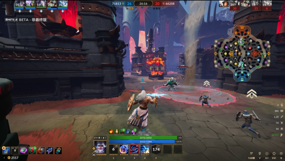 所以《 神之浩劫 2 》更贴近于一种 “ 伪 ”3D 版的英雄联盟,而非死锁或者无畏契约这类英雄射击游戏,因为它基本可以看做没有 Z 轴,玩家的所有活动都是在二维的地面上产生的。
