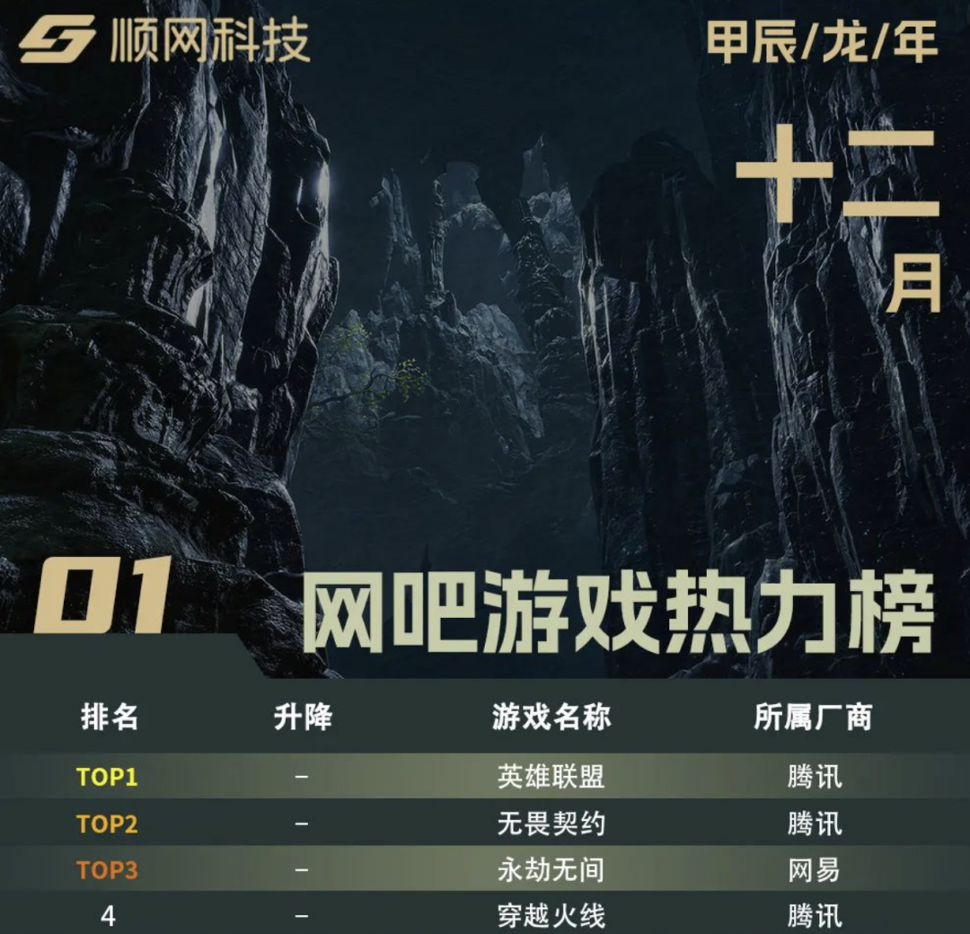 前阵子,国内最大的网吧平台服务商顺网科技旗下的顺网星研社,公布了 2024 年 12 月的网吧游戏热力榜。