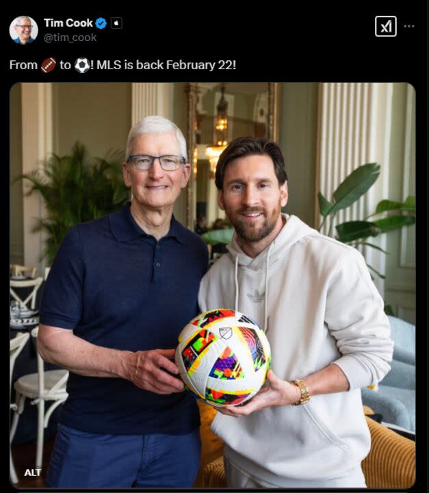 据报道,梅西在迈阿密国际的收入也包括了来自苹果的流媒体直播收入分成。某种意义上来说,库克和梅西是重要合作伙伴。梅西加盟美职联之后,极大提升了苹果购买的美职联转播版权价值,让积极拓展自己流媒体业务的库克收获颇丰。