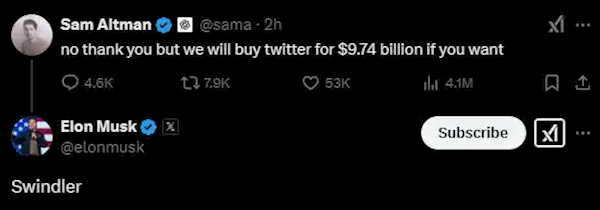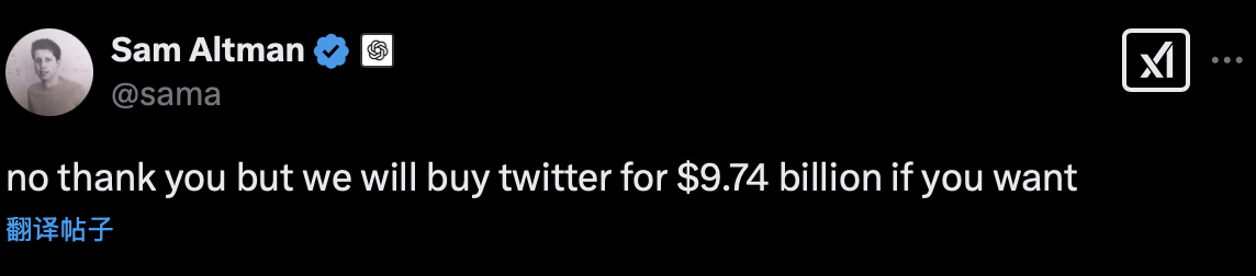 就在今天,马斯克牵头一个财团报价974亿美元,计划收购控制OpenAI的非营利机构母公司,希望成为新OpenAI中的主要甚至控股股东,从而将奥特曼踢出局。马斯克宣布“现在是时候让OpenAI回归到一个以开源和安全为核心的力量,就像它过去那样优秀。”