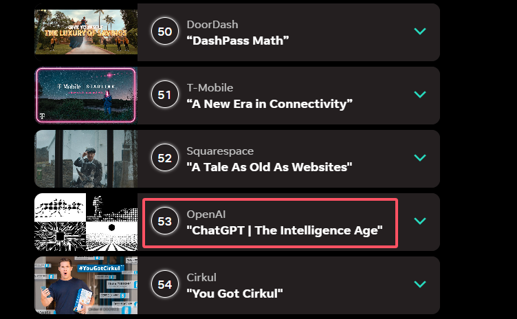 而在今年几十个超级碗广告中,最吸引瞩目的莫过于首次进入超级碗的巨头OpenAI。这家创业公司投入了超过1500万美元,以60秒广告展示了人工智能与人类最伟大发明齐头并进的愿景。