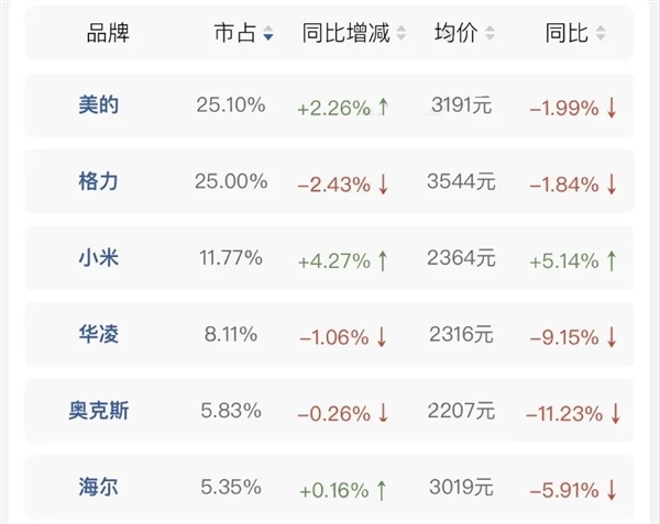 至2024年末,小米空调线上市占率达11.77%,超越华凌,跻身前三,仅次于美的与格力。