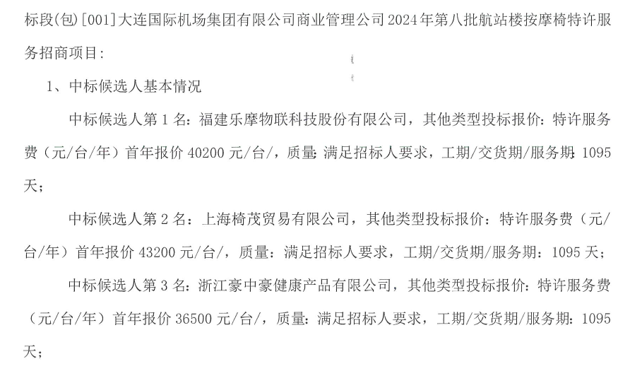 就比如大连国际机场第八批航站楼的一期招标里,乐摩吧给出的单台机器入场费是首年 40200 元 / 台。
