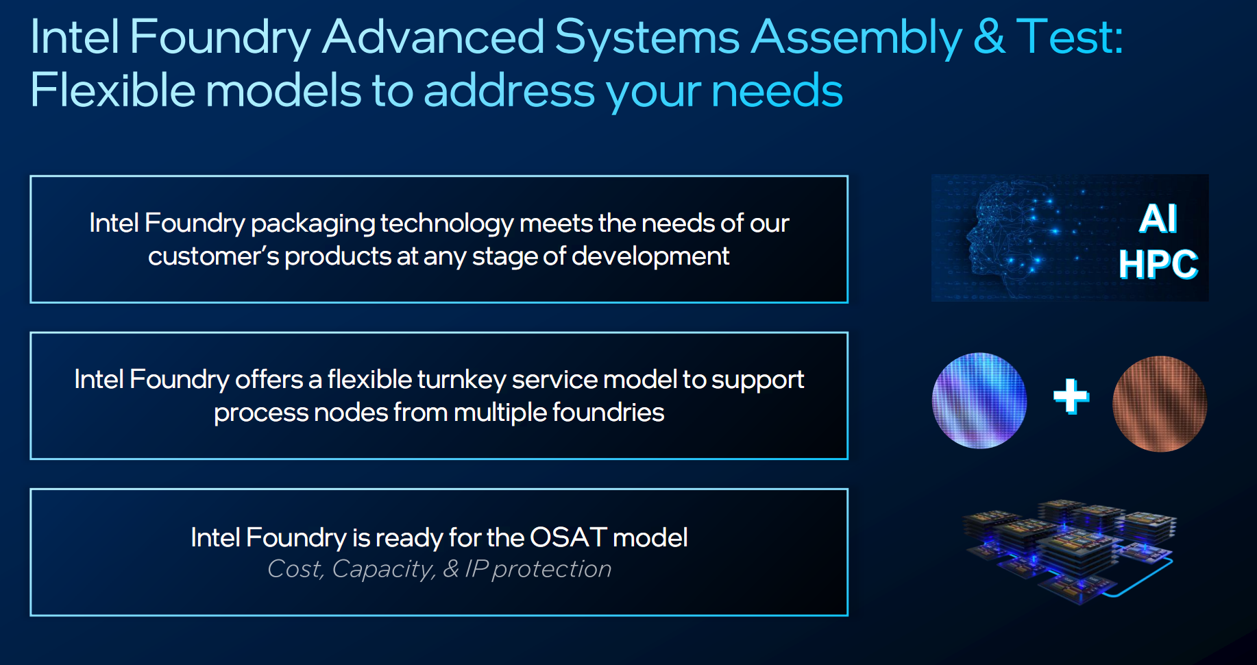 比如,客户可以只需要Intel代工的裸片测试方案,同样能单独提供。