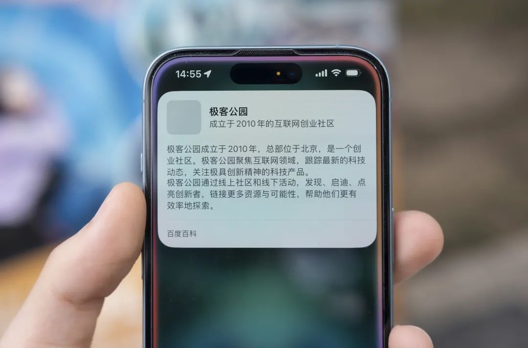 本次更新中对于中国用户最明显的更新,就是中文版支持的内容来源,开始大量引用来自百度搜素/百度百科,作为端侧信息/Apple 第一方信息之外的补充。