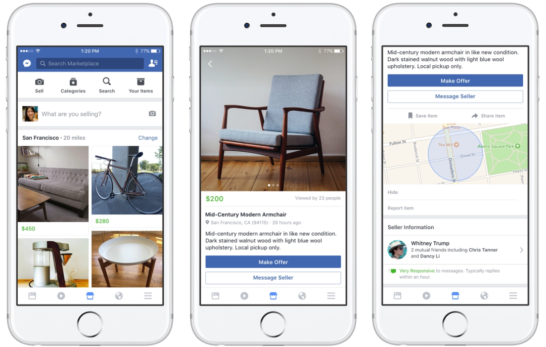Marketplace 依托的是 Facebook 搭建起的本地社交网络,用最简单粗暴的方式连接了社区内的买家和卖家,买卖双方看看对方 Facebook 主页,就能建立起朴素的信任感。