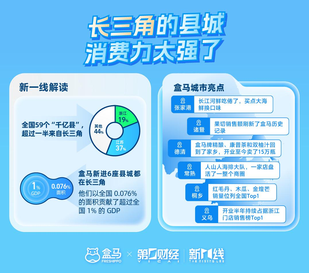 根据官方披露的数据,盒马鲜生2024年又开了72家门店,这里边,就包括了常熟、桐乡、义乌、诸暨、德清还有张家港这些,消费潜力相对比较高的县城。