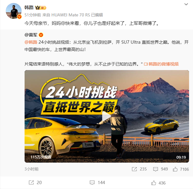 2025年3月24日,奕辰作为班代表在武汉大学雷军班班会中进行了发言,这个小小少年终于走到了自己的引路人面上,向大家娓娓道来他与小米之间的那些简单而纯粹的故事。