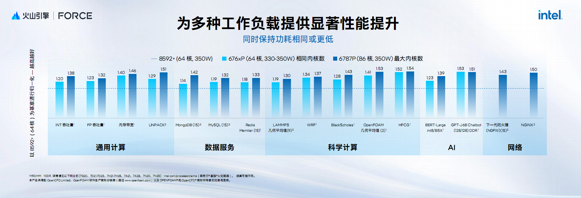 对于云计算应用,至强6系列同样是上佳之选,可以有效提升性能与能效,并显著降低成本。