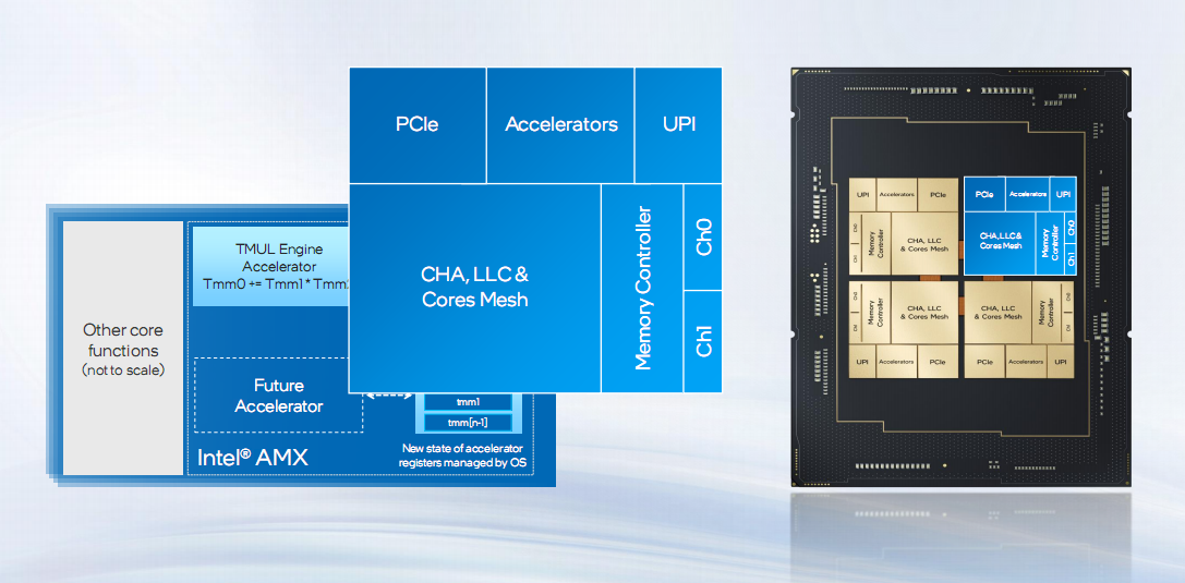 另外,AMX高级矩阵扩展加速器作为集成在CPU内部的AI加速器,可以大幅提升CPU的AI处理能力。
