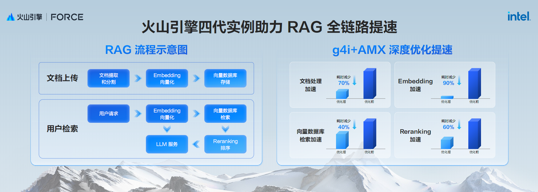 基于最新第四代ECS,火山引擎联合Intel,特别在RAG应用上深度优化。
