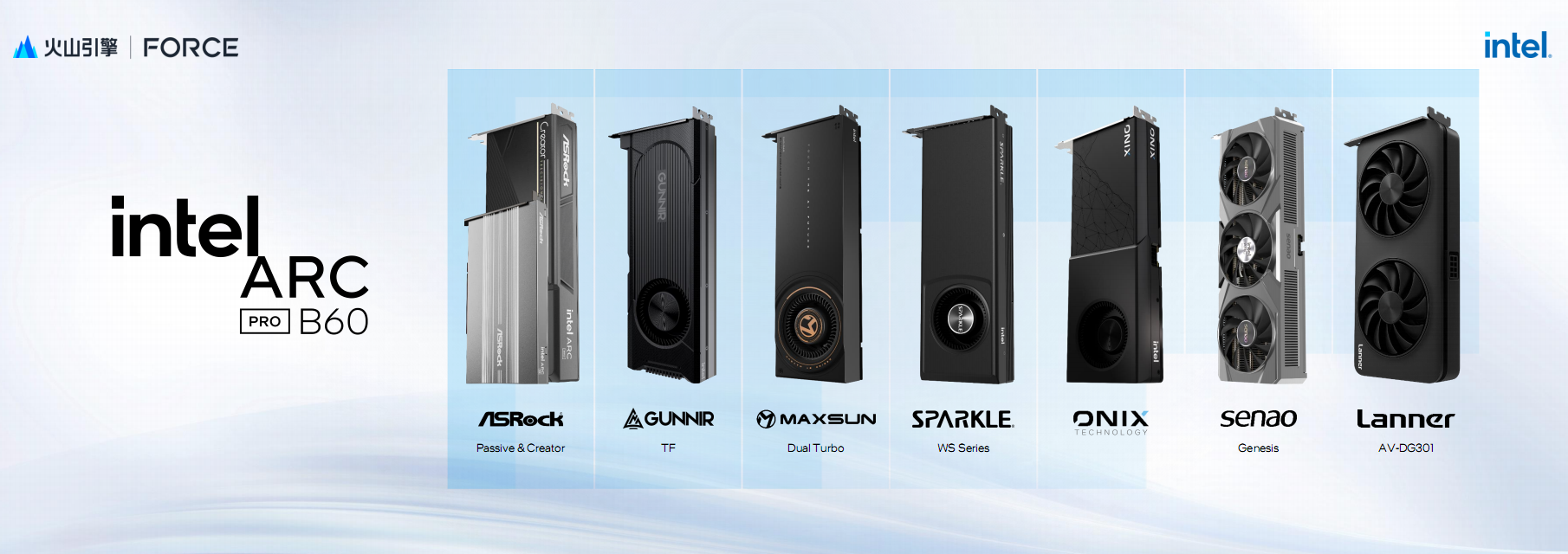 锐炫Pro B60是在台北电脑展上刚刚发布的,已经有多家伙伴推出了不同的产品方案。
