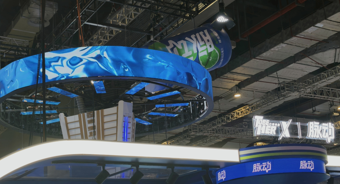 而脉动,则是搞了一全蓝色的主题场景,并在头顶放了超巨型的脉动瓶子。
