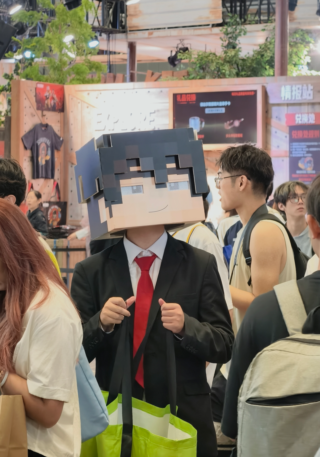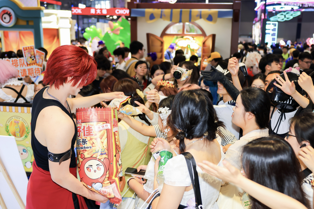 满满一游泳池的自家零食,跟不要钱似的逮谁送谁,帅哥美女 Coser 拎着个跟编织袋差不多大的兜子,装满零食,不用签到不用完成任务,看到你路过就直接给你塞一大把,不要都不行。