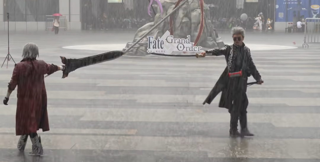 那就是一个维吉尔的 Coser 和一个但丁 Coser,完美还原了一幕鬼泣大病区的名场面。