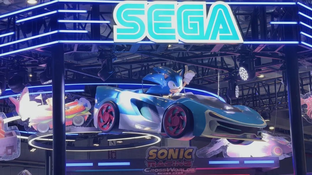 世嘉索尼克这边,则是搞了一个巨大的模型吊在空中。