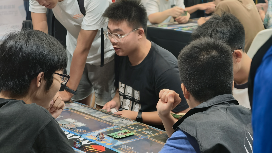 桌游社的座位座无虚席,一个个桌游老哥、资深牌佬,这边打着万智牌,那边掷骰子,旁边还有一堆围观的。