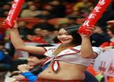 好大!CBA惊现篮球宝贝胸夹iPhone 6观战