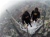 好吓人:蝙蝠侠兄弟登上海400米楼顶自拍