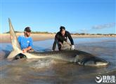 哥俩徒手捉虎鲨当小狗自拍 猛兽一脸无语