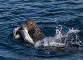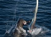 悲催鲨鱼:路遇海狮被咬断头 血溅当场